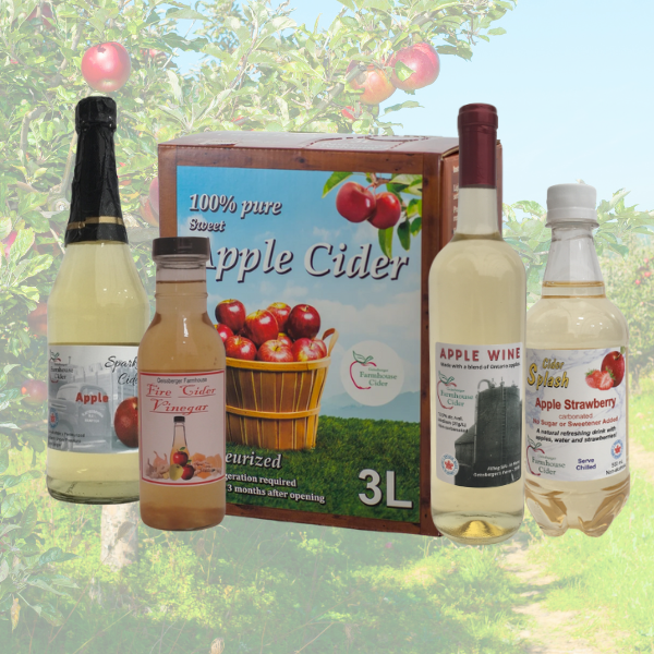 The Geissberger family has been making apple cider since 1970 at our cider house in Clarington Ontario. Along with our various apple cider products, we also do custom pressing with our mobile apple cider mills.